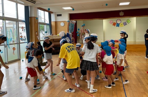 ダンシング玉入れも2つのチームに分かれて熱い競技が!