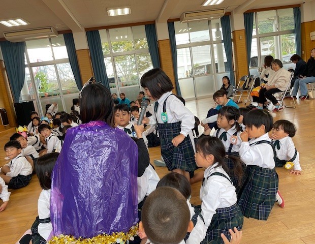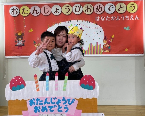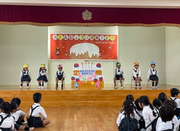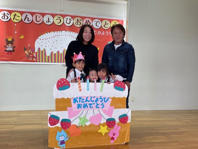 2025.10.29 10月生まれの誕生会🎂💐 28日(火)に、10月生まれのお友達のお誕生会をしました🎂 ちょっぴり恥ずかしそうに出番を待つお誕生さんたち🎂 お花のアーチをくぐって堂々と入場するお誕生さん👑 ステージに勢ぞろいしました✨ お友達からお誕生さんに、心をこめて「ハッピーバースデーの歌♬」 先生たち手作りの「間違い探し」どこが間違ってるかな? ママとお兄ちゃんと一緒に💗 この日がお誕生日でしたね🍓おめでとう!! おじいちゃん、おばあちゃんとお伺いしてビックリ!な、素敵なご夫妻✨ 3兄弟も嬉しそう💕