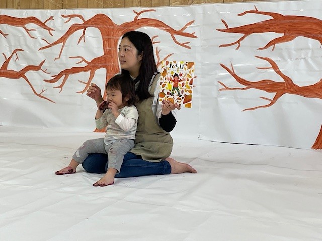 いつものひよこ教室がお話しの世界に変身! おちばの絵本でみんな引き込まれていきました🍂