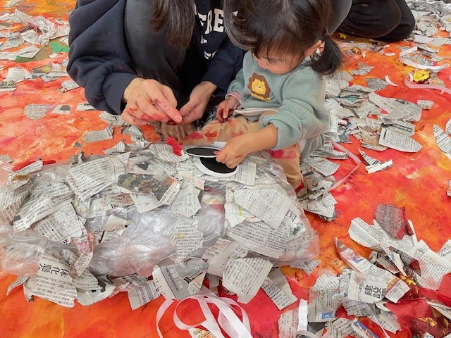 11月25日(火)、未就園児教室に「ぐちゃぐちゃ遊び」認定講師の松尾さおり様を迎え、ご予約いただいたお子様と保護者様と、ぐちゃぐちゃ遊びを思い切り楽しみました(^^)/