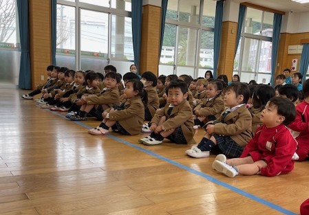 令和8年1月8日10時から花高幼稚園遊戯室において、3学期の始業式を行いました。久しぶりに登園したお友達もいて、みんな嬉しい笑顔😊、「明けましておめでとうございます!」の声が響いていました。