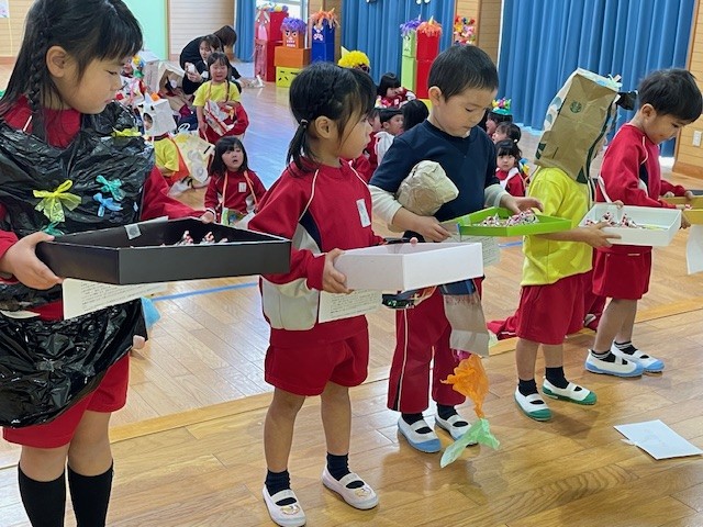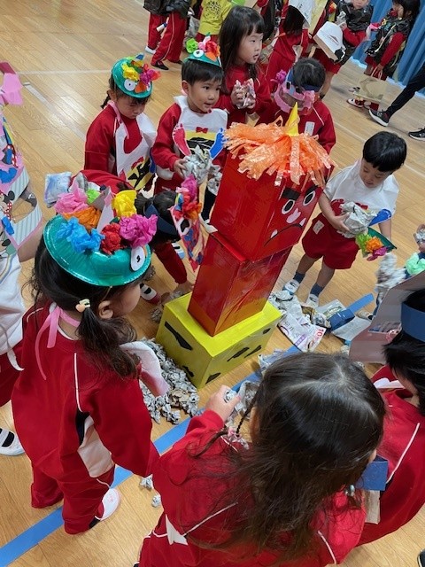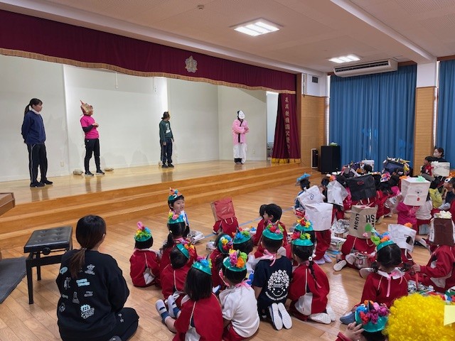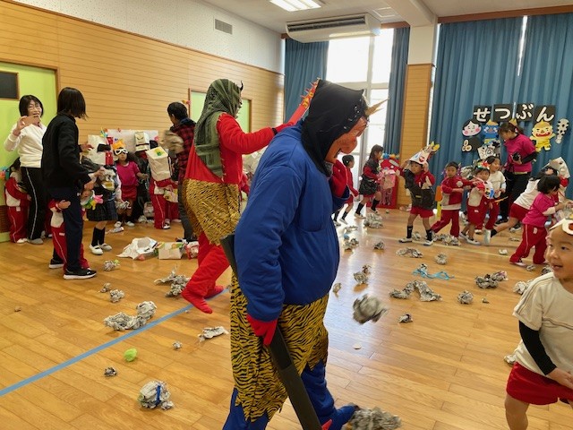 2026.02.13 花高幼稚園に鬼がきたー👹 2月3日、みんなで節分のイベントをしました👹 先生たちが作ってくれた可愛らしい鬼さんたち✨ イベント会場のお遊戯室に続々と個性的な鬼さんたちが入場です! 先生たちによる節分の由来劇・・・そうか、なるほど~!? 次はゲーム、鬼さんに新聞紙豆を投げよ~!盛り上がりました💗 突如、太鼓の音とともに鬼がやってきました!きゃーっ逃げろ~~!! 鬼さん退治の後、クラス代表が豆をもらいました(^^)/